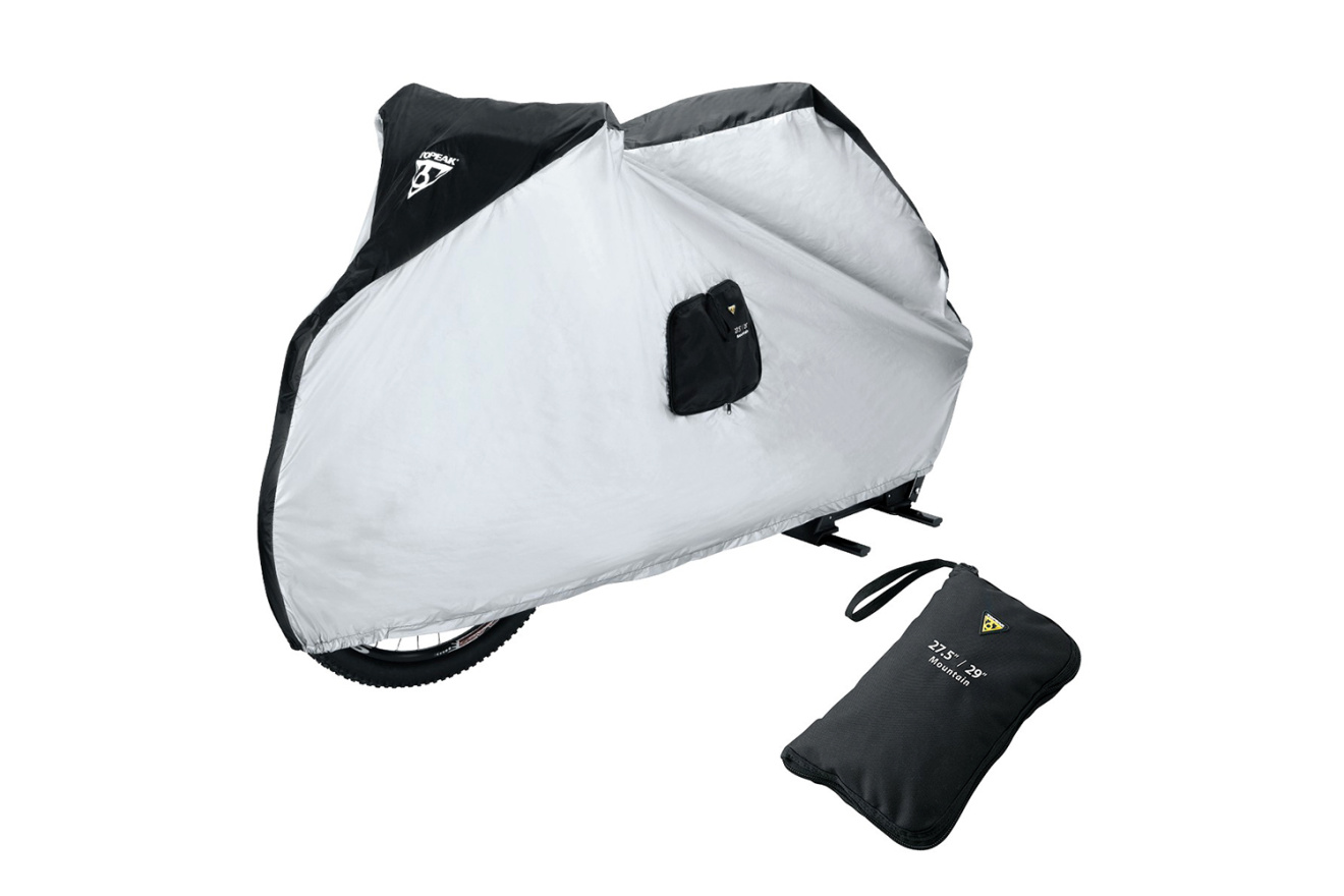 Мягкий чехол для хранения велосипеда Topeak Bike Cover 27.5"/29" предназначен для МТБ велосипедов с колесами 27.5 или 29 дюймов. Чехол защищает велосипед от осадков при хранении на улице и от пыли при длительном хранении в гараже.