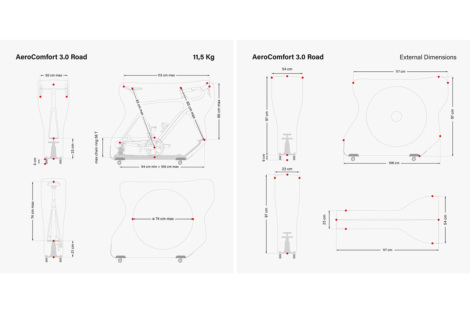 Конструкция позволяет сложить велосипед без снятия руля и подседельного штыря, что способствует сохранению точных профессиональных настроек. Внешние контуры идеально соответствуют раме велосипеда, минимизируя объем.