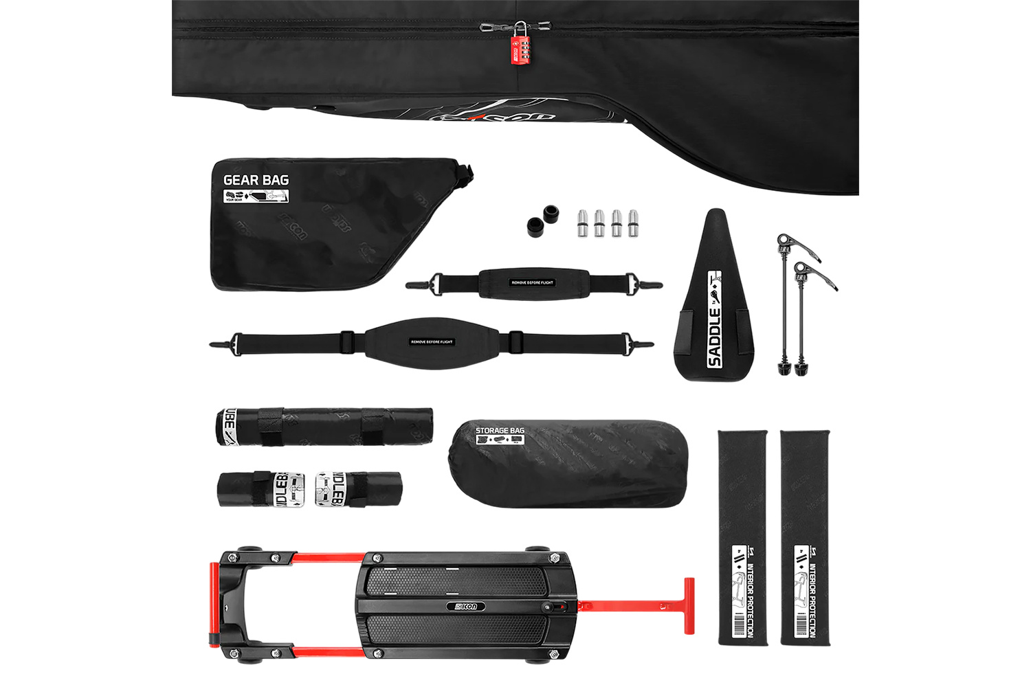 В комплекте чехол Aerocomfort 3.0, TSA-замок, сумка для снаряжения, сумка для хранения, мягкий плечевой ремень, передний ремень, адаптеры QR - 4 шт, адаптеры TA - 2 шт, защита для верхней трубы рамы, накладки на руль - 2 шт, защитный чехол для седла, эксцентрики QR передний и задний - 2 шт, накладки на тормоза - 2 шт.