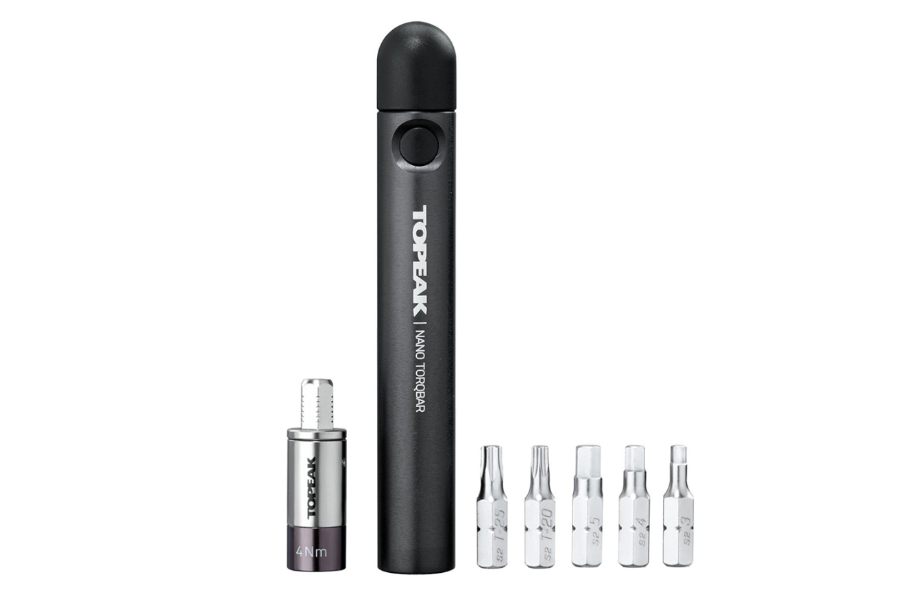Динамометрический ключ Topeak Nano TorqBar 4 для ремонта и регулировки велосипеда с набором головок для затяжки с силой не более 4 Nm.