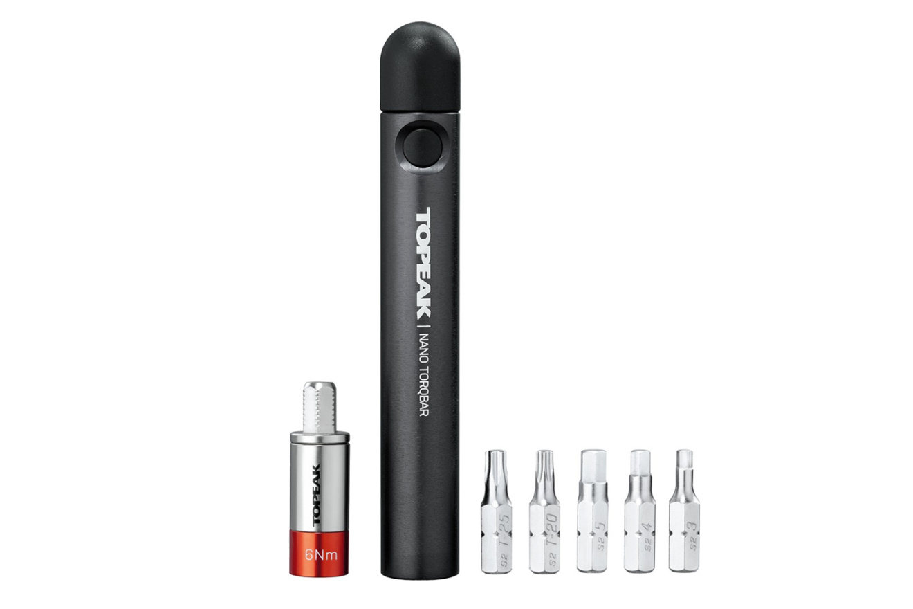 Динамометрический ключ Topeak Nano TorqBar 6 для ремонта и регулировки велосипеда с набором головок для затяжки с силой не более 6 Nm.