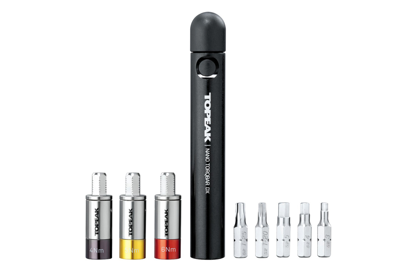 Динамометрический ключ Topeak Nano TorqBar DX для ремонта и регулировки велосипеда с набором головок для затяжки с силой не более 4 / 5 / 6 Nm.