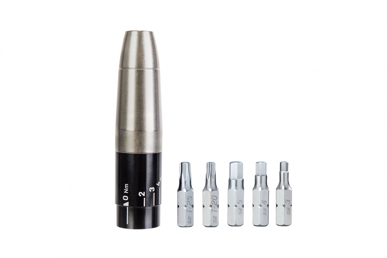 Работает с универсальным гаечным ключом на 5 мм или любым мини-инструментом с шестигранным ключом на 5 мм для обеспечения правильного затягивания болтов рамы и компонентов до рекомендуемых значений крутящего момента для обеспечения безопасности и производительности.