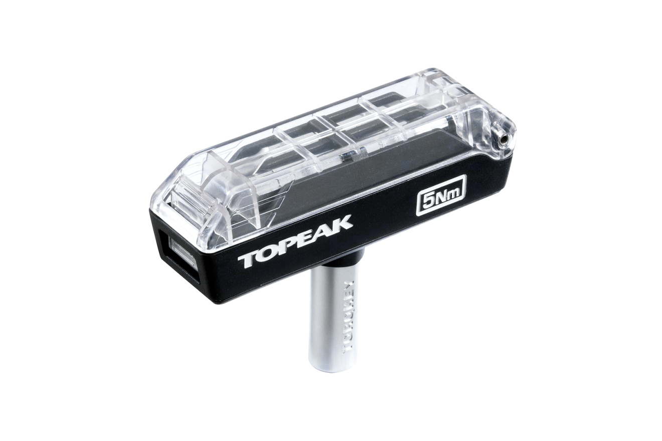 Инструмент Topeak Torque 5 выполняет функции динамометрического ключа с 4-мя торцевыми битами (насадками). Предотвращает от чрезмерного затягивания резьбовых соединений где это необходимо. Предназначен для ремонта и настройки велосипеда.