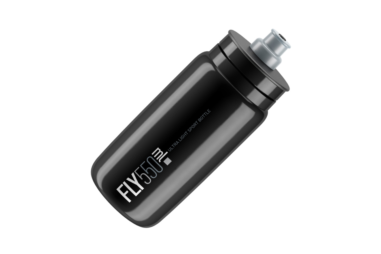 Фляга велосипедная Elite Fly, пластик, 550 мл / Черная с серой крышкой