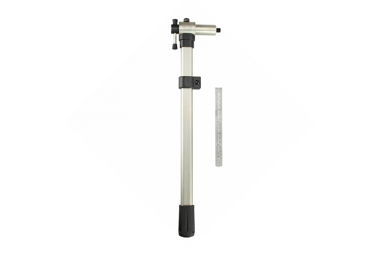 Манометрическая линейка изготовлена из толстостенной хромированной стали, длинная и узкая центровка подходит для широкого спектра велосипедов, а резиновая рукоятка отвечает за комфорт в эксплуатации.