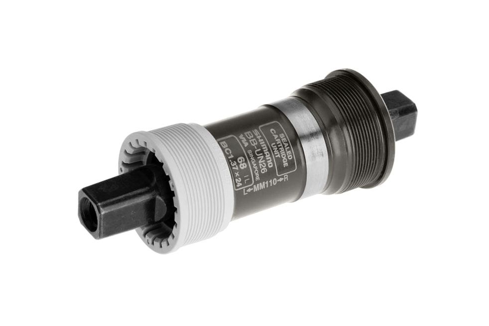 Каретка Shimano BB-UN26 с осью под квадрат JIS и качественными подшипниками защищенными от грязи.