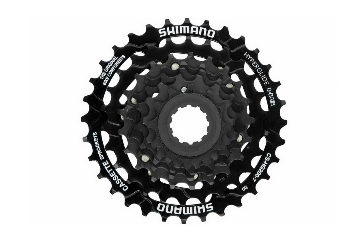Кассета Shimano CS-HG200-7 на 7 скоростей для МТБ велосипедов начального и любительского уровней. Разработана для надежных переключений и длительной эксплуатации.