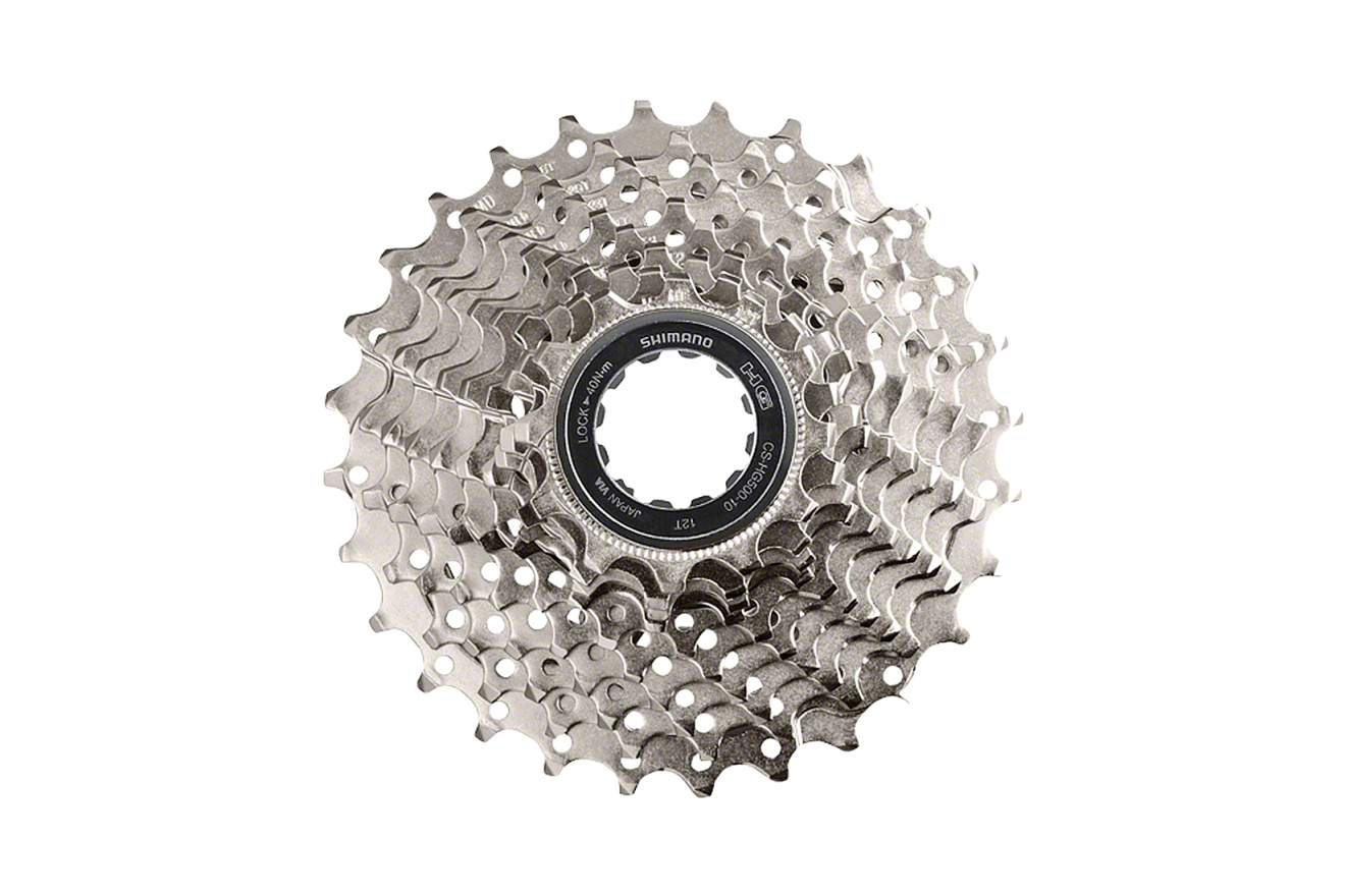 Кассета Shimano Tiagra CS-HG500 на 10 скоростей для шоссейного велосипеда с технологией Hyperglide для плавных переключений.