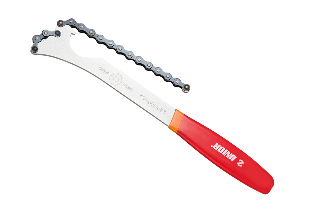 Хлыст Unior Chain Whip 628902, для односкоростных кассет, это легкий, удобный и надежный инструмент для любой мастерской.