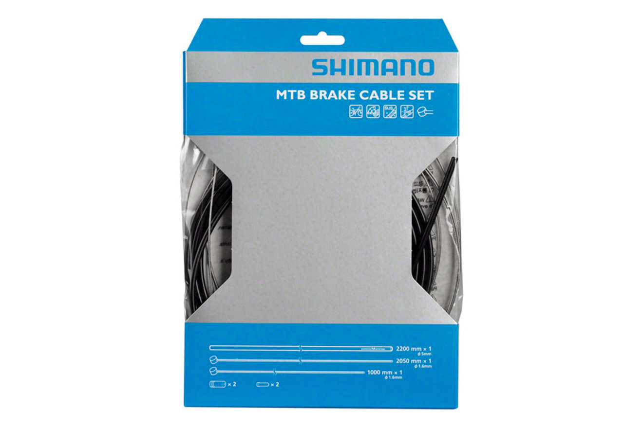 Комплект тормозных тросов Shimano Stainless Steel для передних и задних тормозов МТБ велосипеда. Кабели из нержавеющей стали устойчивы к атмосферным воздействиям.