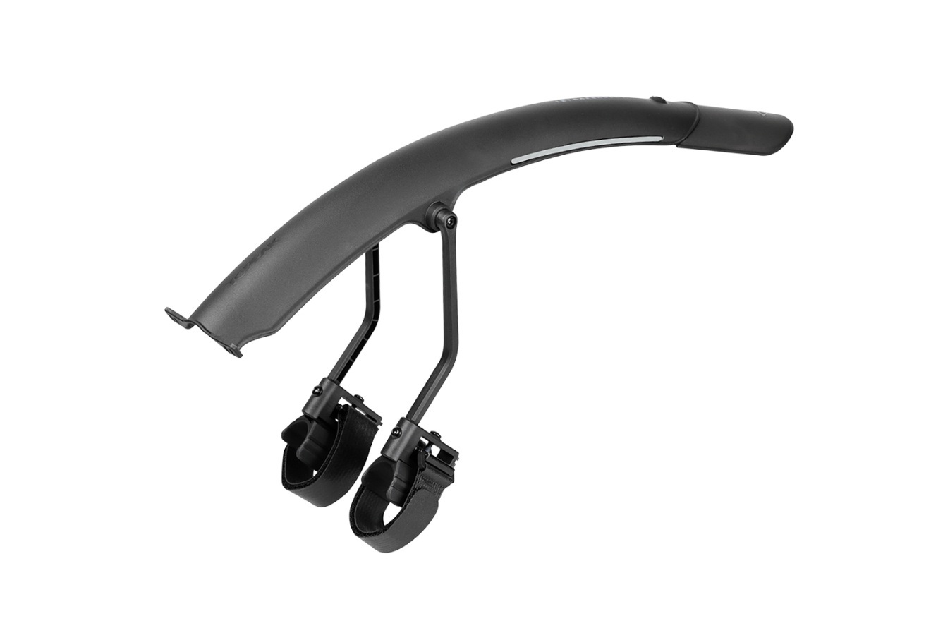 Крыло легко крепится к вилке велосипеда с помощью ремней на липучках, а возможность регулировки угла наклона передних стоек обеспечивает более надежную посадку и повышенную защиту.