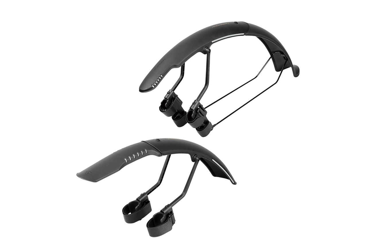 Крылья легко крепятся к вилке и раме велосипеда с помощью ремней на липучках, а возможность регулировки угла наклона передних стоек обеспечивает более надежную посадку и повышенную защиту.