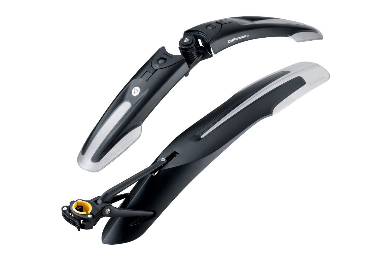 Крылья Topeak Defender M1/XC11 для MTB и туристических велосипедов с размером колёс 27.5 дюймов. Щитки с применением вставок из мягкого пластика и полированной внутренней поверхностью не дают грязи накапливаться.