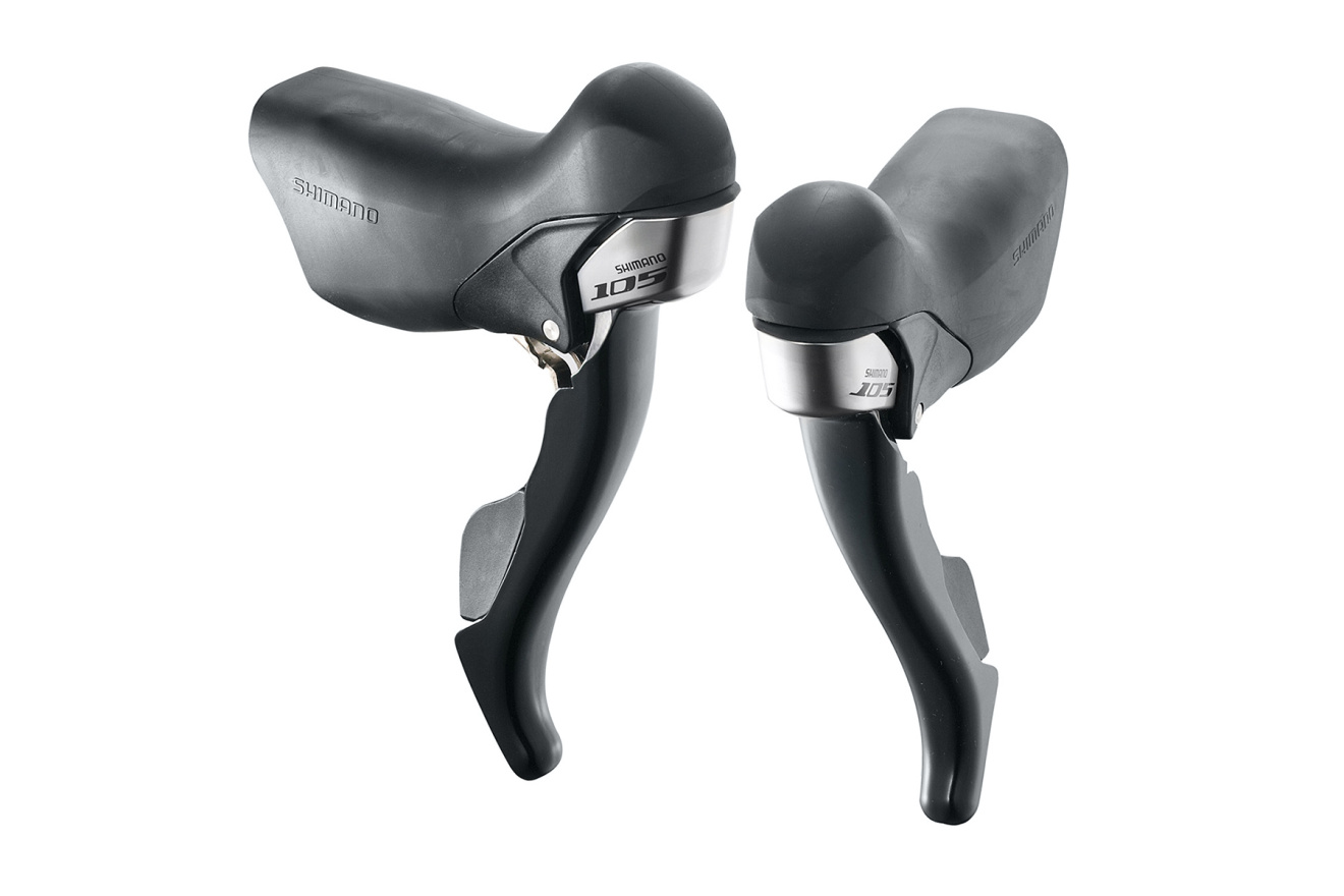 Манетки шоссейные Shimano 105 ST-5700, 2х10 скоростей, черные ручки, комплект, с тросом и оплеткой.