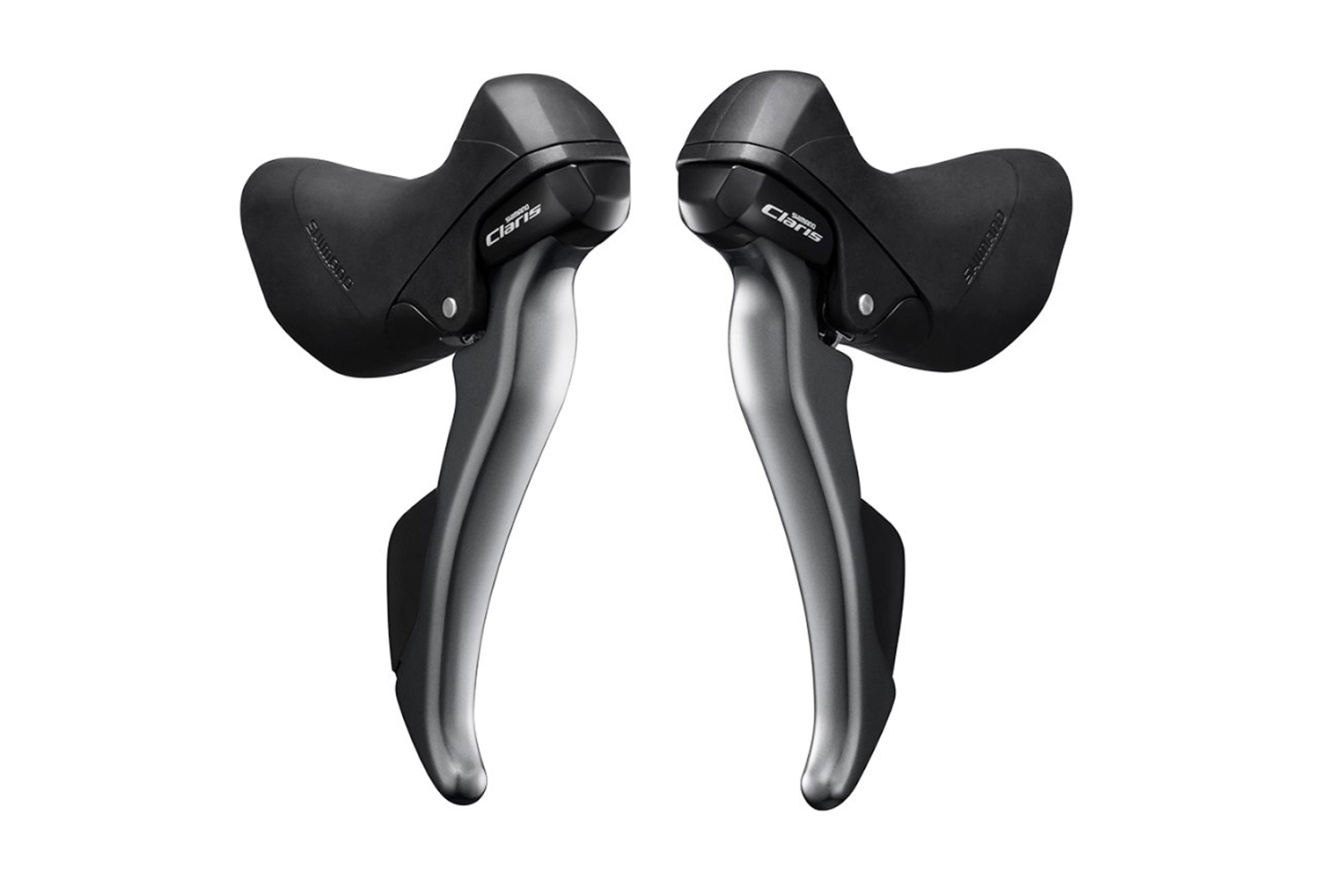 Манетки шоссейные Shimano Claris ST-R2000, комплект на 2х8 скоростей для начинающих велосипедистов. Система Dual Control имеет функции торможения и переключения.