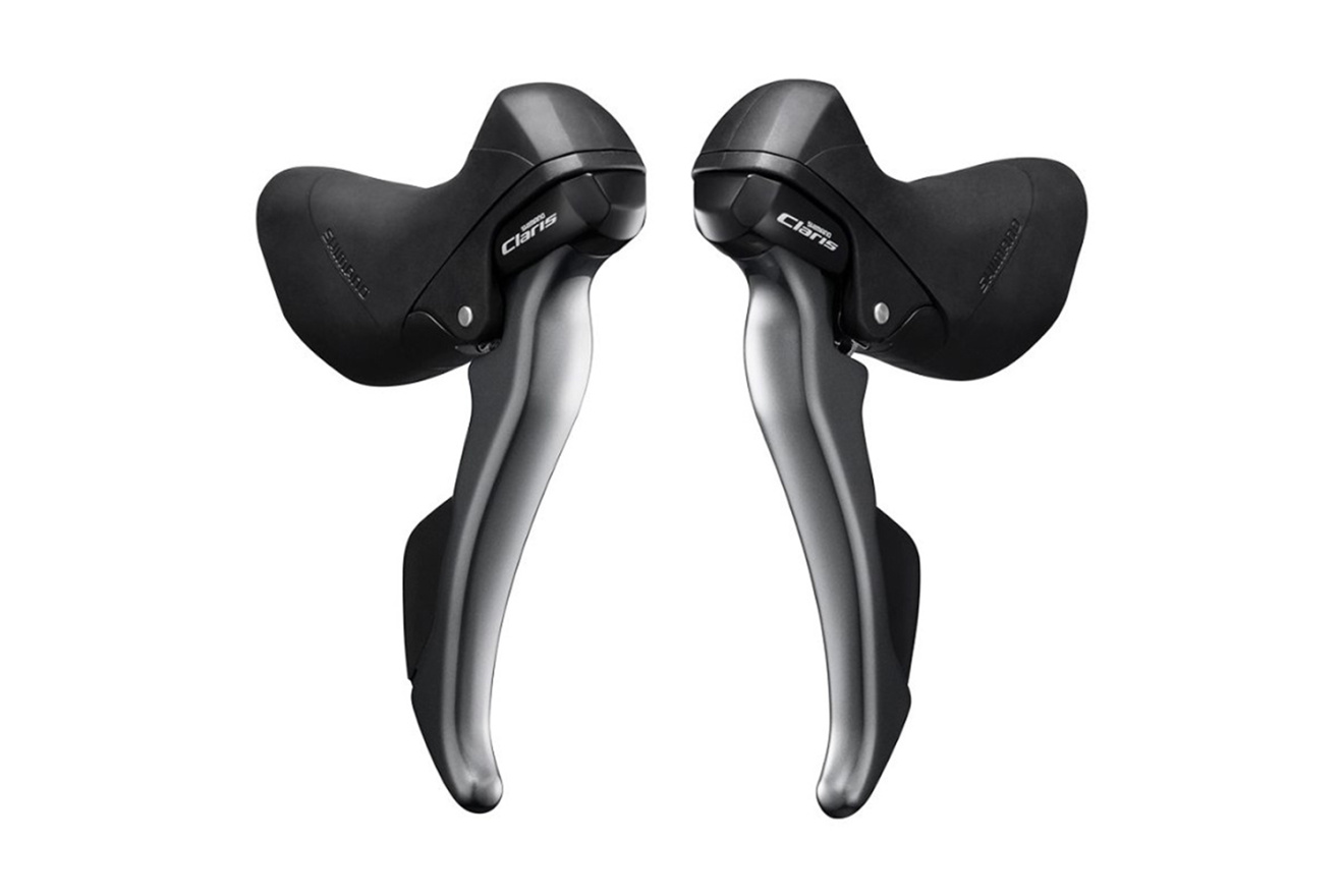 Манетки шоссейные Shimano Claris ST-R2030, комплект на 3х8 скоростей для начинающих велосипедистов. Система Dual Control имеет функции торможения и переключения.