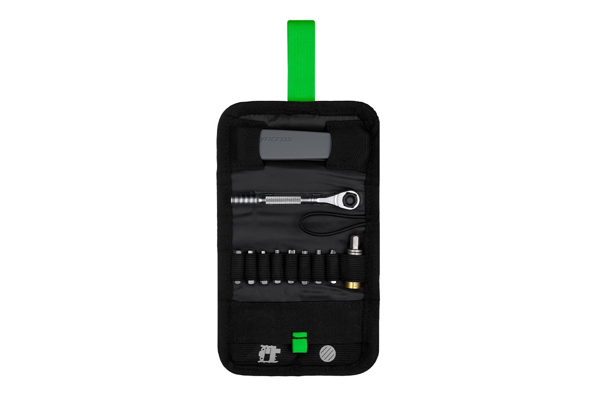 Набор инструментов Syncros Guide Kit, 12 функций, это необходимый для велосипеда комплект, включающий в себя трещотку (шестигранник) с 9 битами и адаптером крутящего момента 5 Нм, набор рычагов для шин, резиновые бесклеевые заплатки и выжимку цепи с держателем звеньев и ключами для спиц.