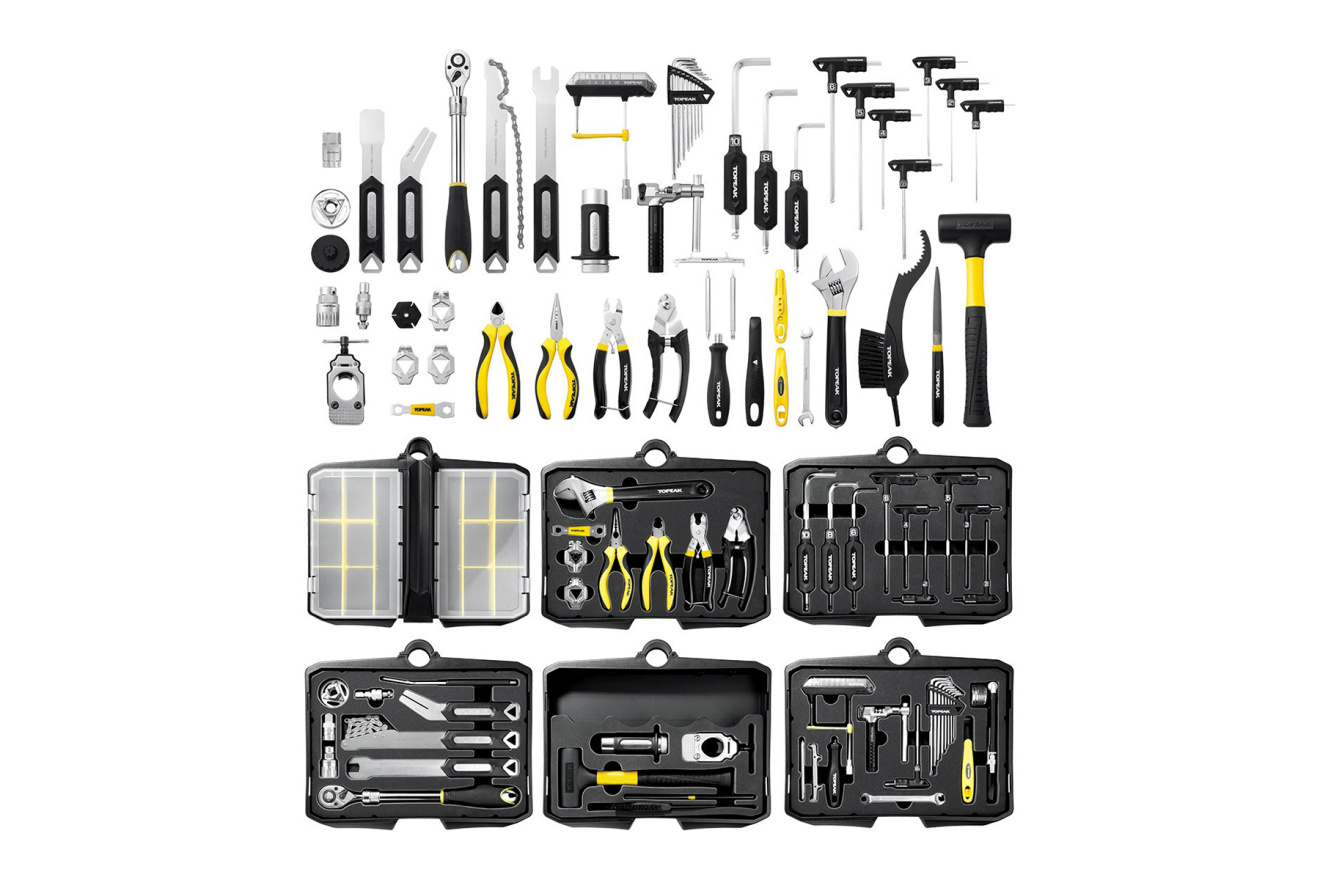 Профессиональный набор инструментов Topeak PrepStation в пластиковом ящике-органайзере на колёсах с шестью отсеками для ремонта и обслуживания велосипедов в стационарных условиях мастерской. Предназначен ремонтникам и специалистам сервиса.