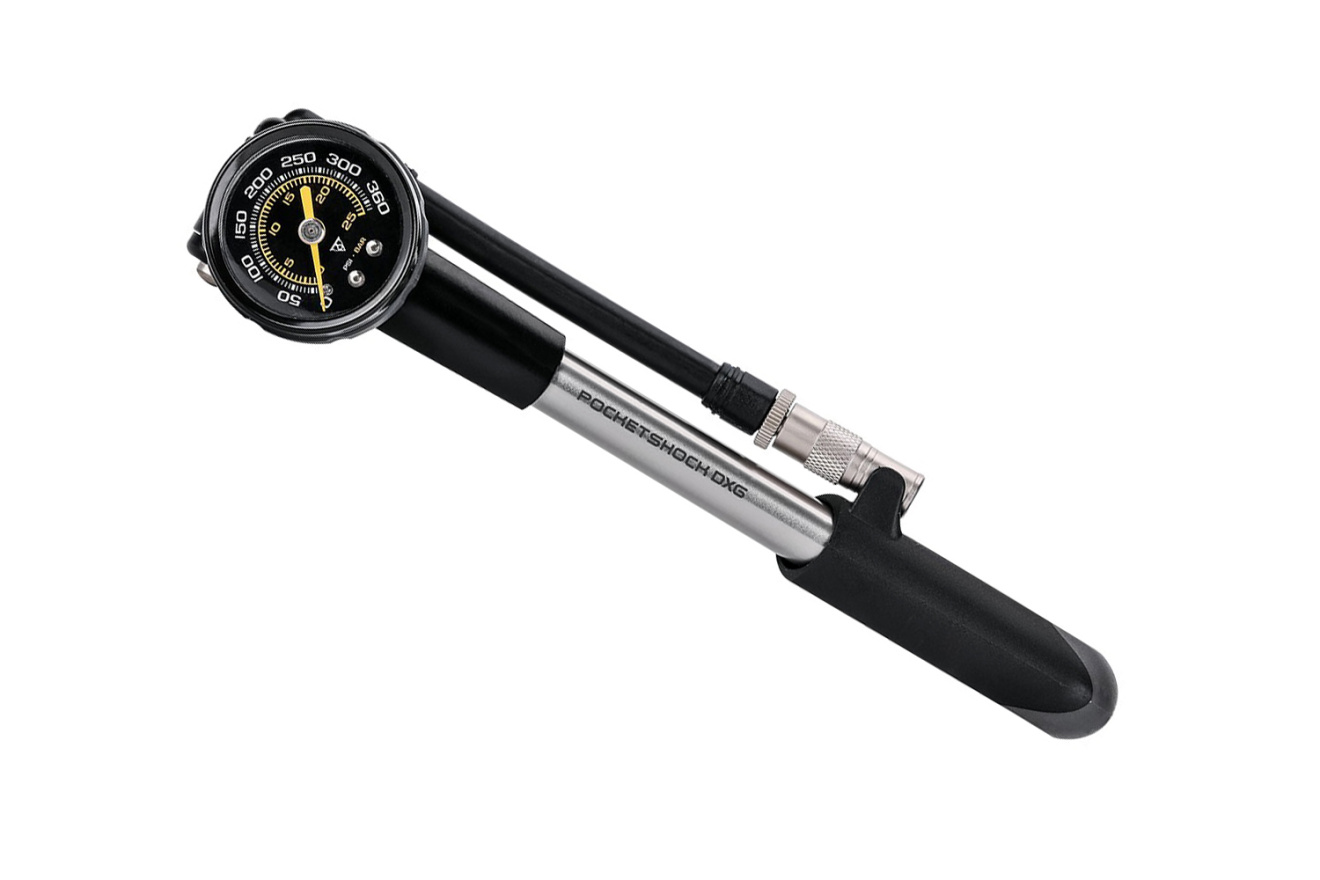 Насос для вилки Topeak PocketShock DXG (2018), высокого давления для воздушных велосипедных вилок и амортизаторов. Аналоговый манометр позволяет точно контролировать подаваемое давление до 360 фунтов на квадратный дюйм / 24.8 бар.