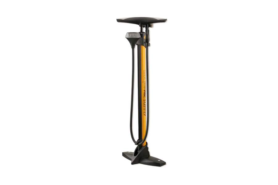 Напольный насос Giyo GF-56 с большим манометром верхнего крепления и двусторонним клапаном для велосипедных колес с вентилями Presta и Schrader. Позволяет накачивать колесо до давления 11 bar (160 psi). Подходит для шоссейных, МТБ и Fat велосипедов.