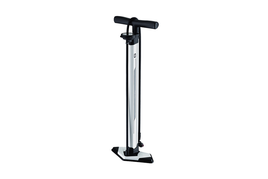 Напольный насос Giyo GF-94TA с ресивером, манометром и универсальным клапаном для велосипедных колес с вентилями Presta и Schrader. Позволяет накачивать бескамерные и камерные колеса. Подходит для шоссейных и МТБ велосипедов.