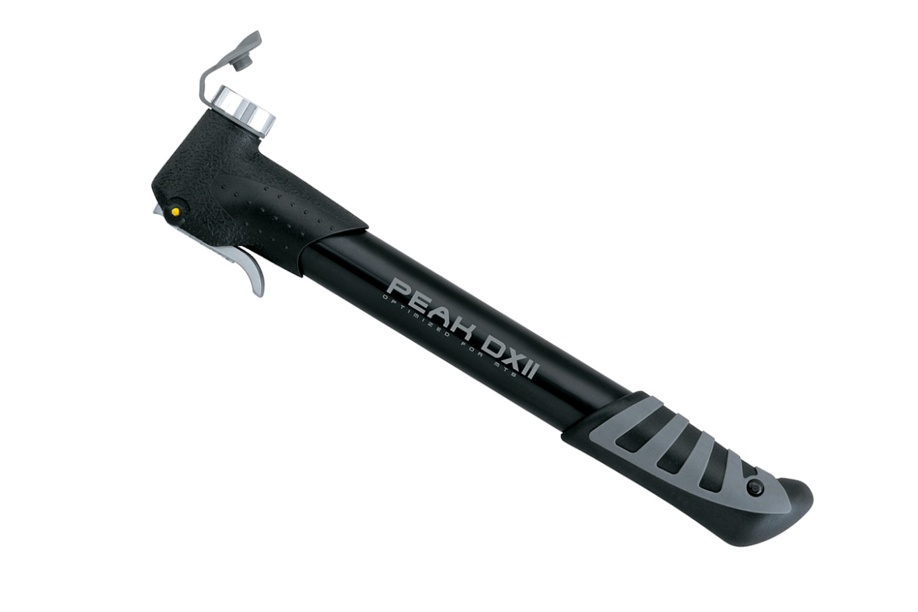 Компактный ручной насос Topeak Peak DX II для дорожных и горных велосипедов. Позволяет накачивать колесо до давления 6 бар (90 psi).