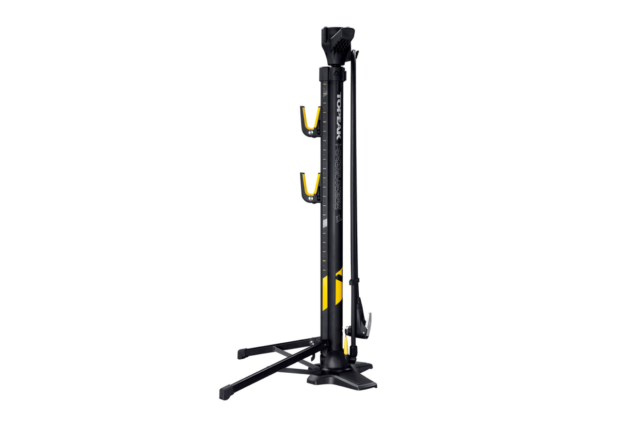 Напольный насос-стенд Topeak Transformer X предназначен для быстрой накачки колёс велосипедов со всеми типами вентилей в условиях веломастерской. Максимальное давление накачки 11 бар (160 psi) подходит для шоссейных велосипедов. Точность давления контролируется стрелочным манометром в рукоятке.