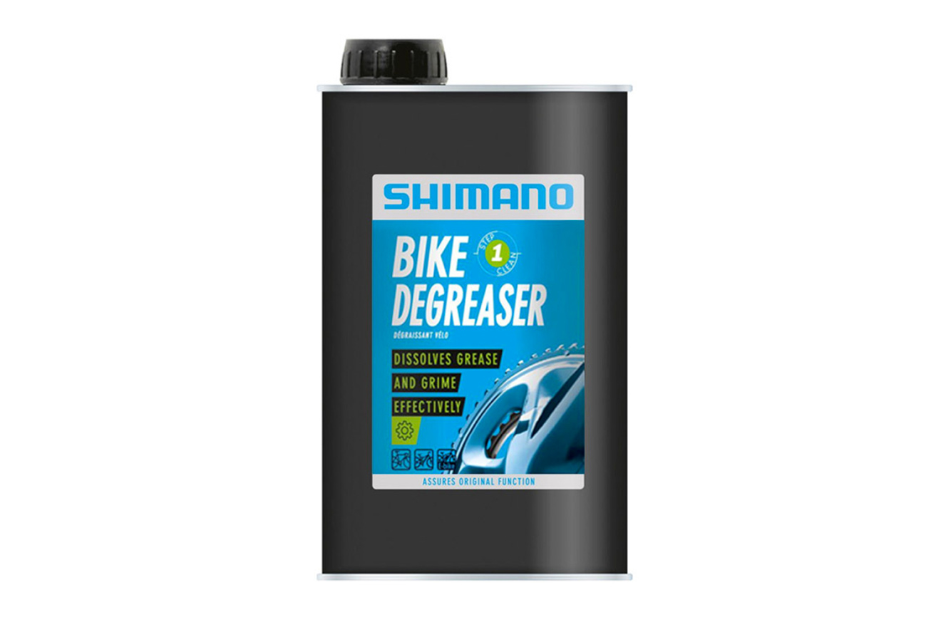 Обезжириватель Shimano Degreaser в металлической канистре 1 литр для удаления жирных загрязнений на деталях велосипеда от старой смазки. Предназначен для чистки деталей перед нанесением новой смазки.