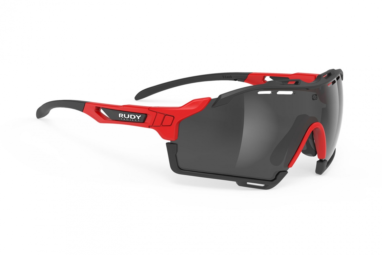 Очки Rudy Project Cutline Fire Red Matte RP Optics Smoke Black обладают скульптурным дизайном, широкими защитными линзами, съемными бамперами и самой интуитивно понятной системой сменных линз.