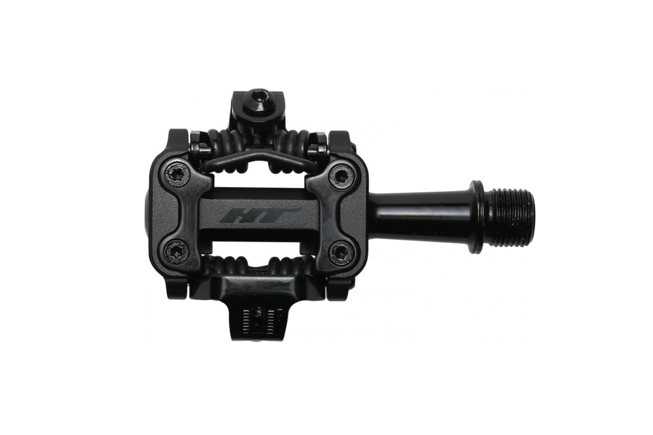 Контактные педали HT M1 стандарта HT Pro Cleat с алюминиевым корпусом, стальной осью и двусторонним механизмом встегивания. Сконструированы для катания в стиле трейл и кросс-кантри.