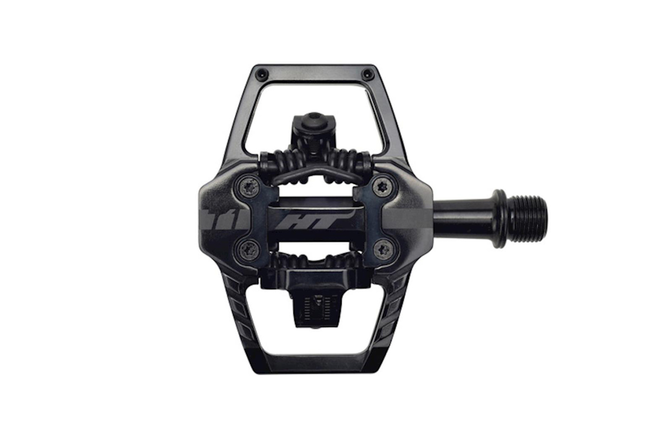 Контактные педали HT T1 с алюминиевым корпусом, стальной осью и двусторонним механизмом встегивания. Созданы специально для эндуро.