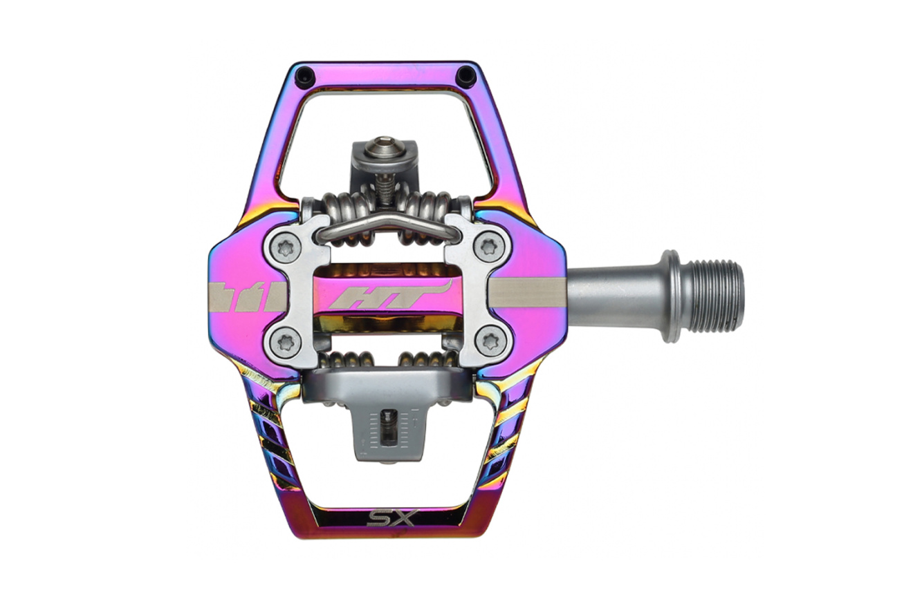 Контактные педали HT T1 с алюминиевым корпусом, стальной осью и двусторонним механизмом встегивания. Созданы специально для эндуро.