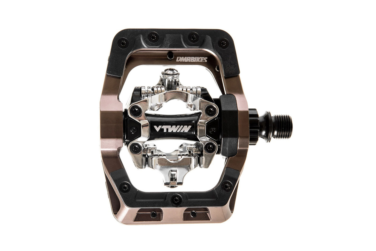 Контактные педали DMR V-Twin стандарта SPD, снабженные платформой с регулируемыми сменными штифтами, обеспечивающими дополнительное сцепление в сложных погодных условиях.