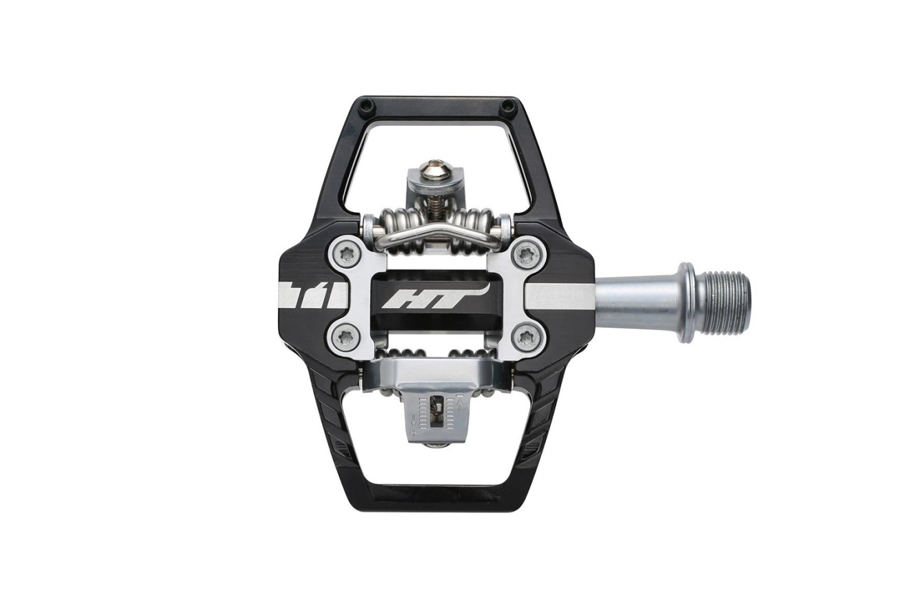 Контактные педали HT T1 с алюминиевым корпусом, стальной осью и двусторонним механизмом встегивания. Созданы специально для эндуро.