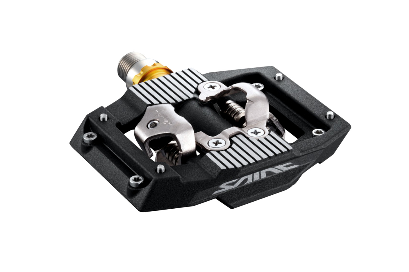 Педали имеют двухстороннюю конструкцию сочетающую контакт SPD с платформой. Выступающие регулируемые штифты позволяют улучшить захват или использовать педали с велообувью без шипа SPD.