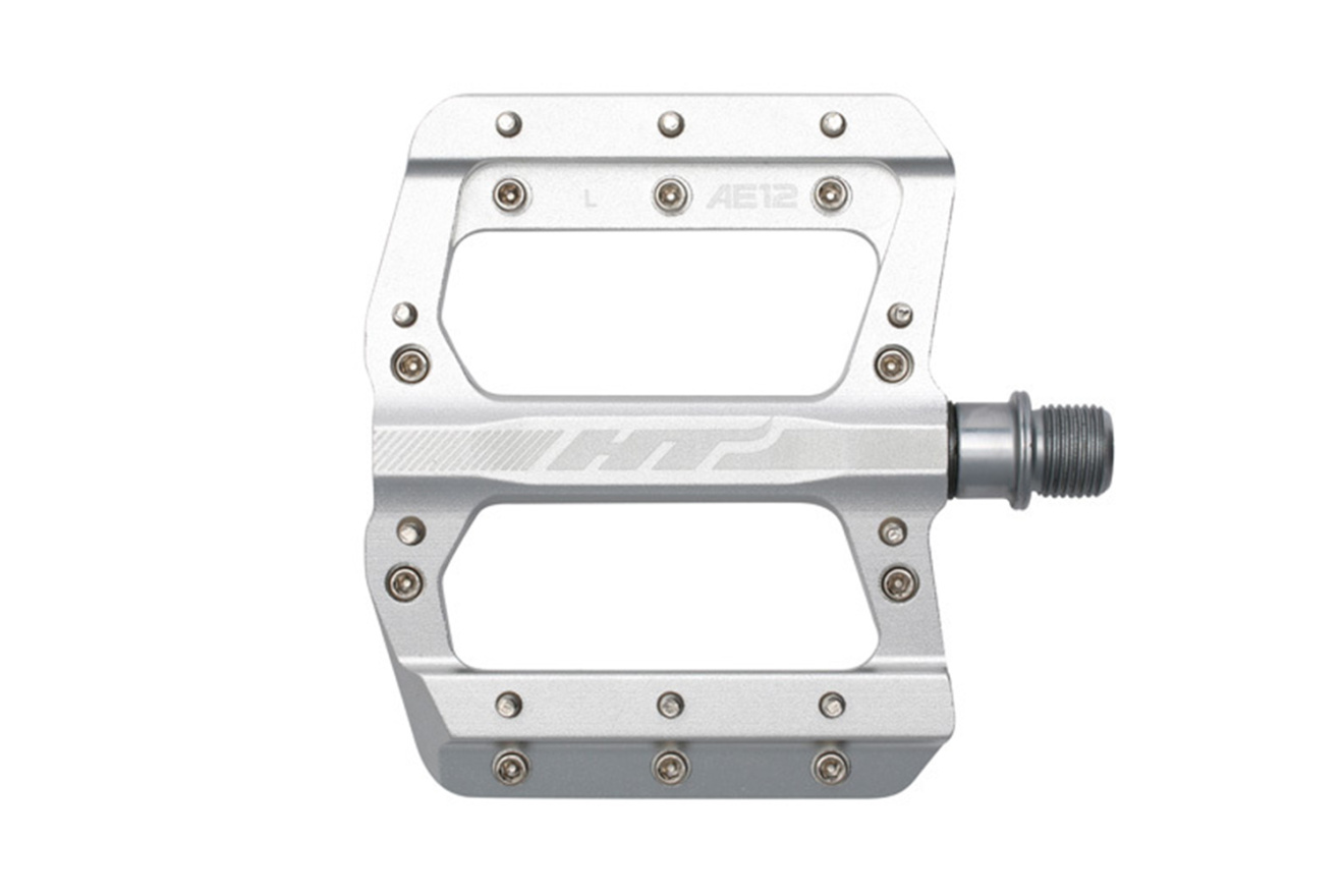 Педали платформы HT AE12 с алюминиевым корпусом, стальной осью и 10 сменными шипами для горных велосипедов. Рассчитаны на узкую ногу.