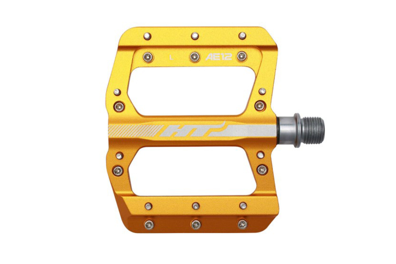 Педали платформы HT AE12 с алюминиевым корпусом, стальной осью и 10 сменными шипами для горных велосипедов. Рассчитаны на узкую ногу.