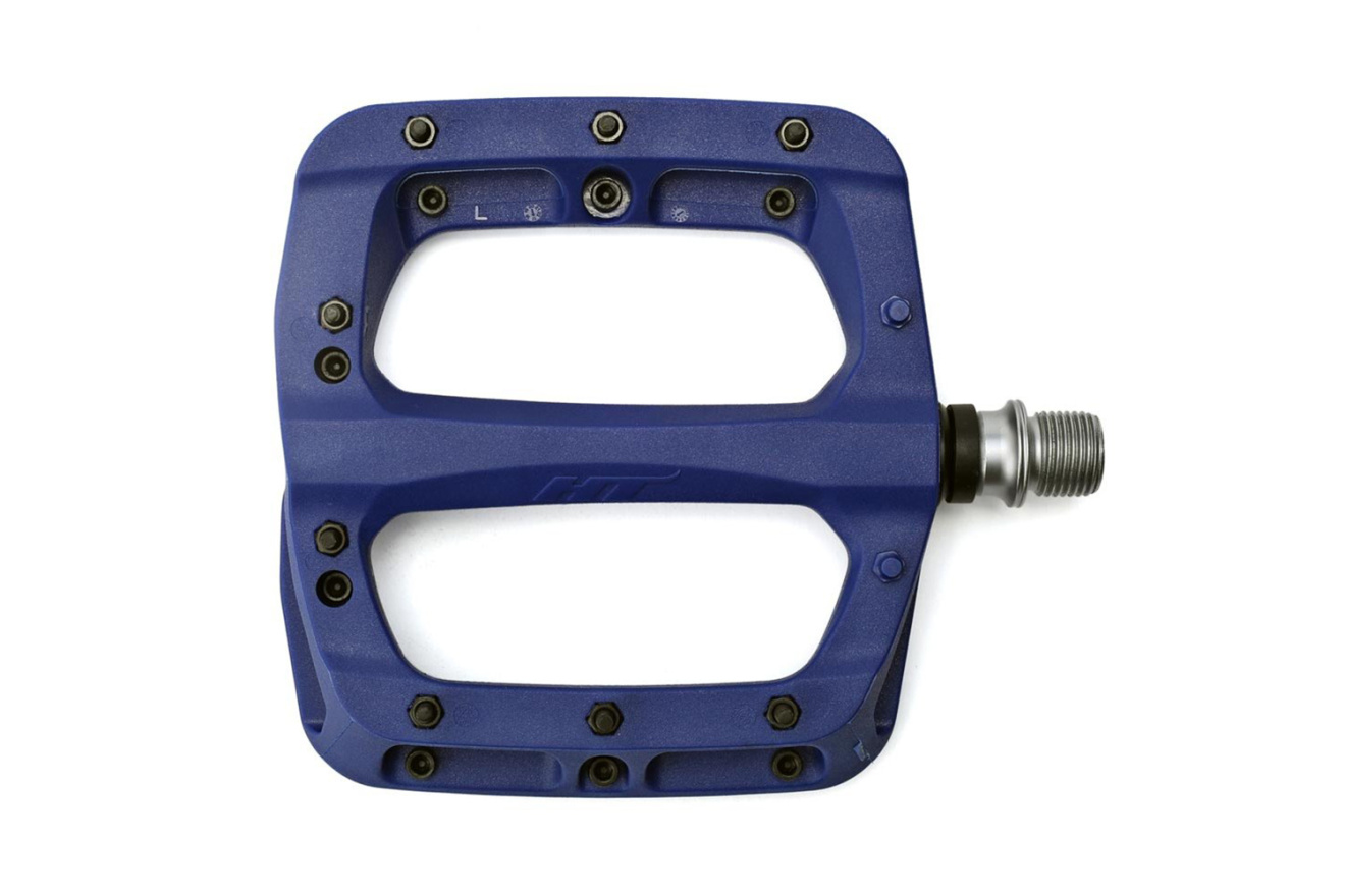 Педали платформы HT PA03A с пластиковым корпусом, стальной осью и 16 сменными шипами для горных велосипедов. Одни из лучших в бюджетном ценовом сегменте педалей.