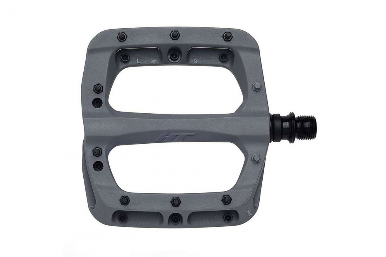 Педали платформы HT PA03A с пластиковым корпусом, стальной осью и 16 сменными шипами для горных велосипедов. Одни из лучших в бюджетном ценовом сегменте педалей.
