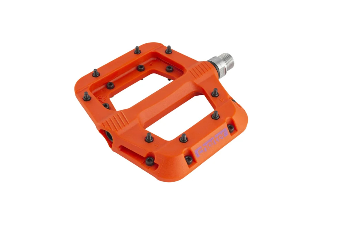 По 8 штифтов с каждой стороны не позволяют ногам соскальзывать даже в сильный дождь, а яркое покрытие делает педали настоящим украшением любого байка.