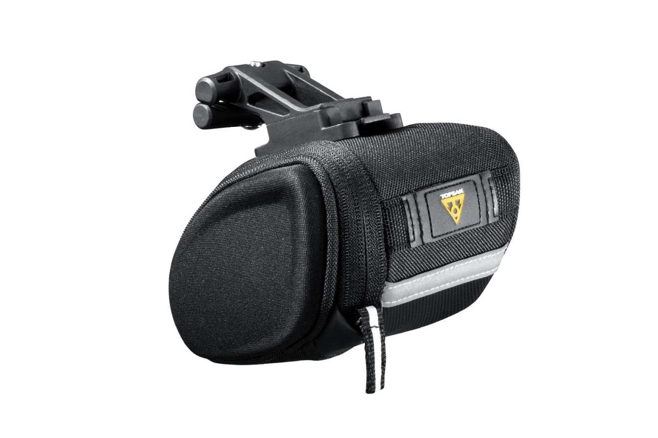 Откидная боковая панель открывает лёгкий доступ к внутреннему объёму. Система крепления QuickClick (F25) обеспечивает простую фиксацию под седлом. Предусмотрены светоотражающая полоса и петля для заднего фонаря.