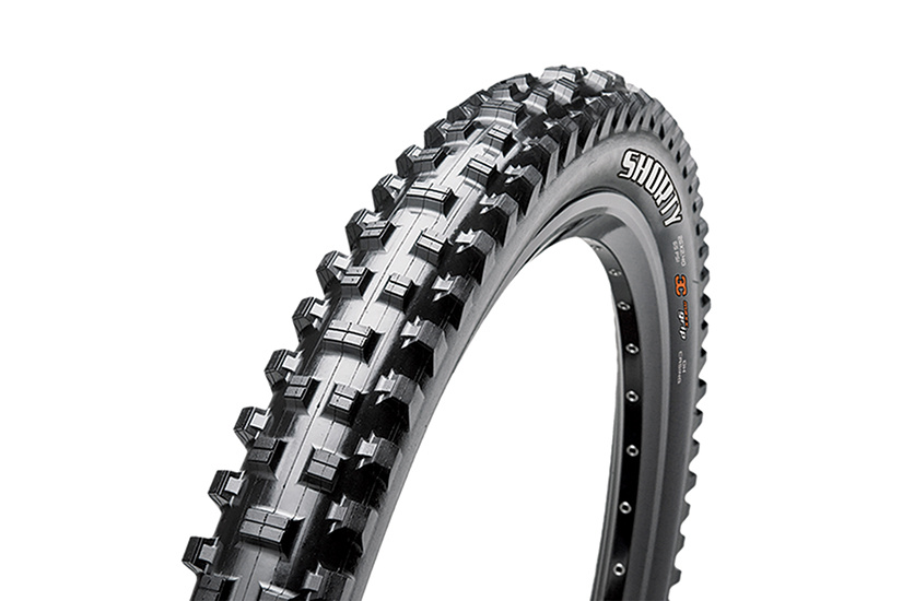 Велопокрышка Maxxis Shorty 3C MaxxTerra EXO TR Triple на 27.5 дюймов, модель со средними шипами, которая может "обрабатывать" твердый и рыхлый влажный грунт. Большие, высокие и слегка ступенчатые боковые шипы обеспечивают стабильное торможение и максимальный контроль в повороте.