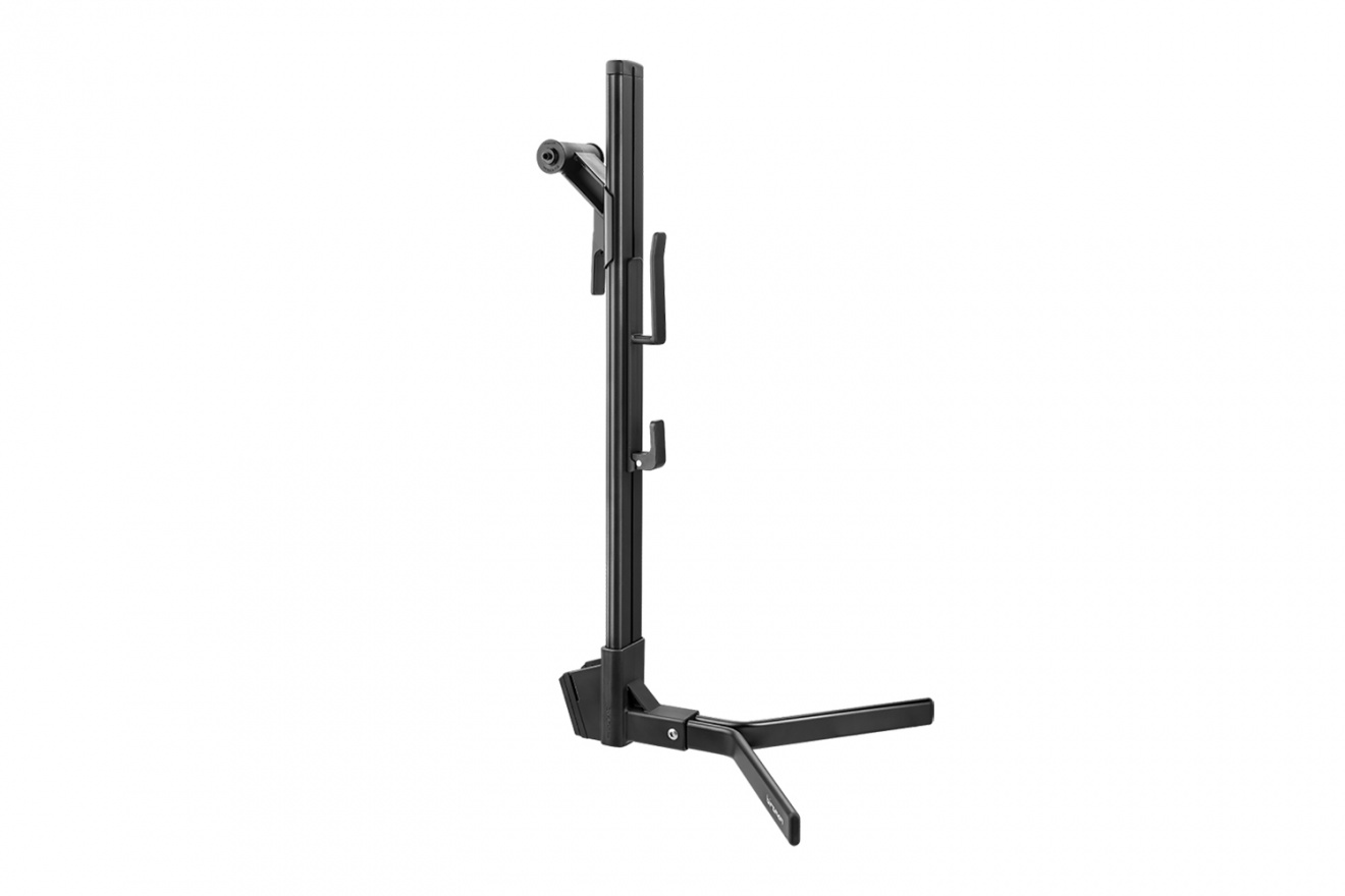 В вертикальном положении подставка идеально подойдет для хранения велосипеда с фиксацией за подседельный штырь, а в горизонтальном положении – это идеальный 3-точечный ремонтный стенд с креплением за каретку и вилку.