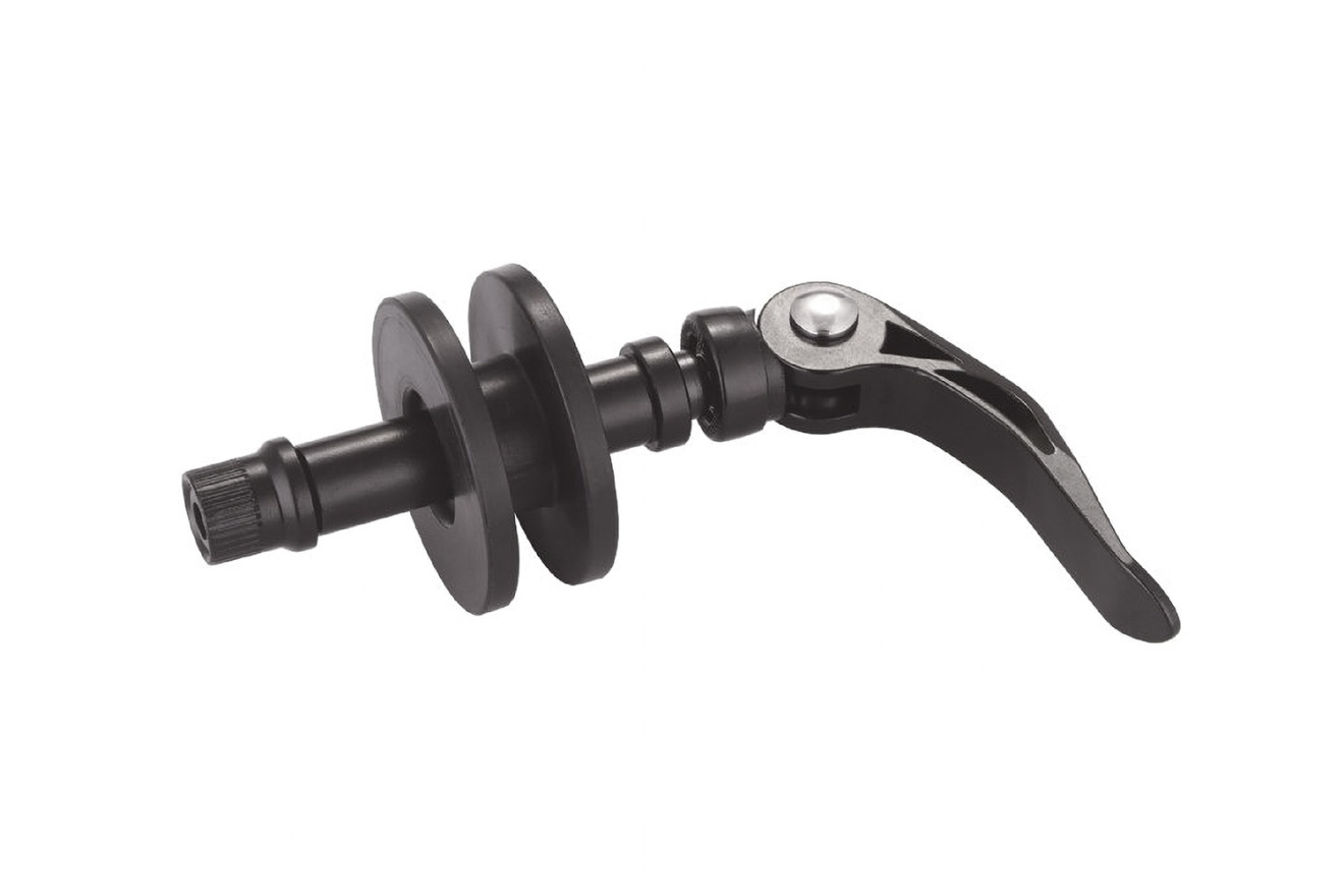 Благодаря быстроразъемному рычагу инструмент быстро фиксируется на дропауте, а свободно вращающееся колесо позволяет без лишних разместить цепь.