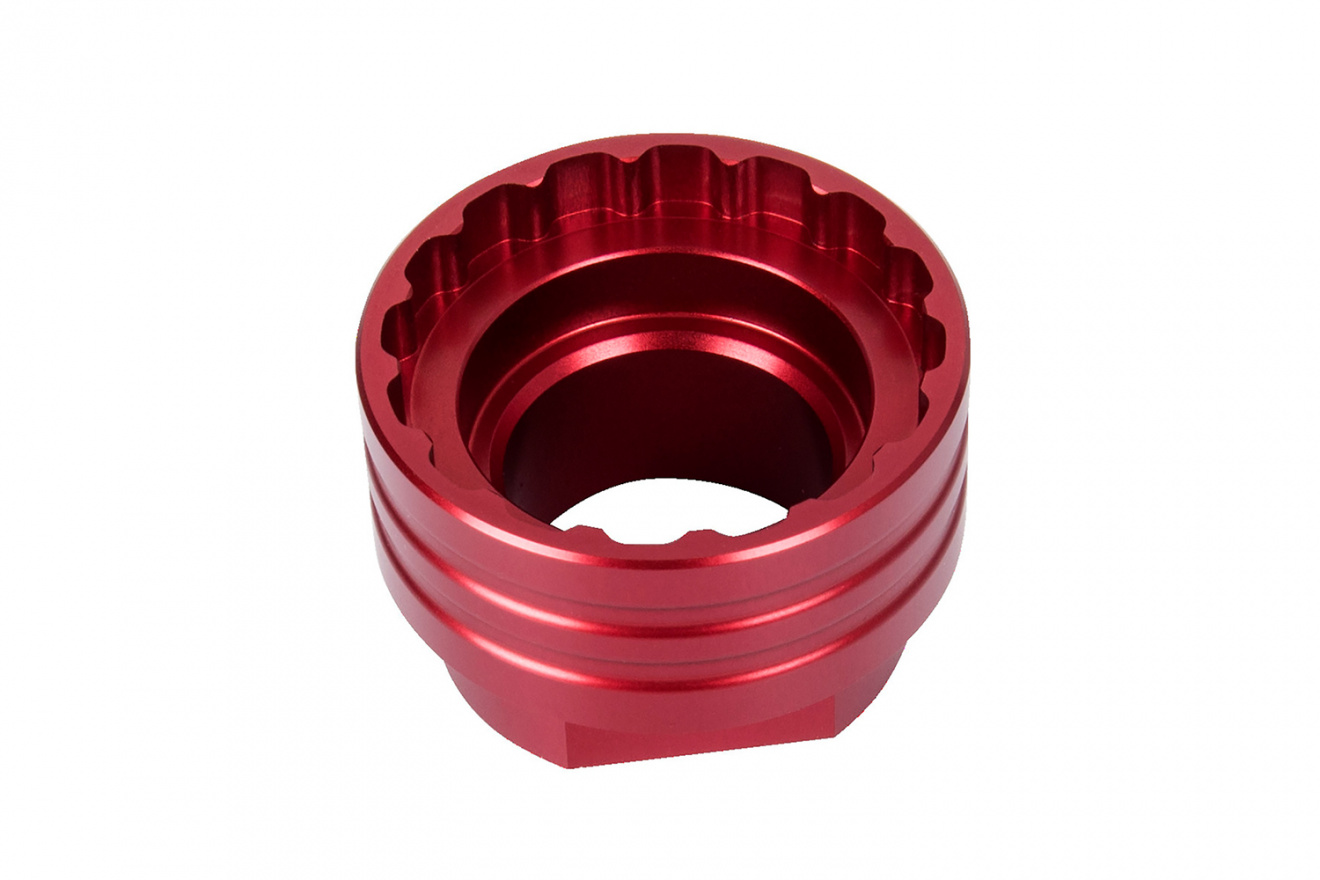 Прочная алюминиевая конструкция с ЧПУ-обработкой и красным анодированием отличается легким весом и долговечностью эксплуатации, а привод 1/2” совместим с динамометрическими ключами, трещотками или любыми другими рукоятками.