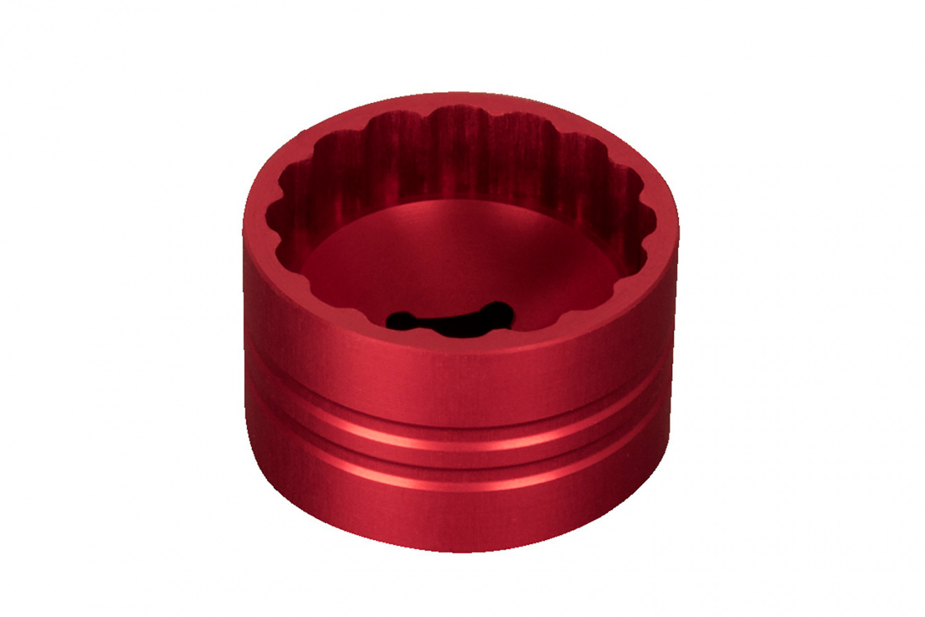 Алюминиевая конструкция с ЧПУ-обработкой и красным анодированием отвечает за точную посадку и предотвращает риск повреждения деталей.