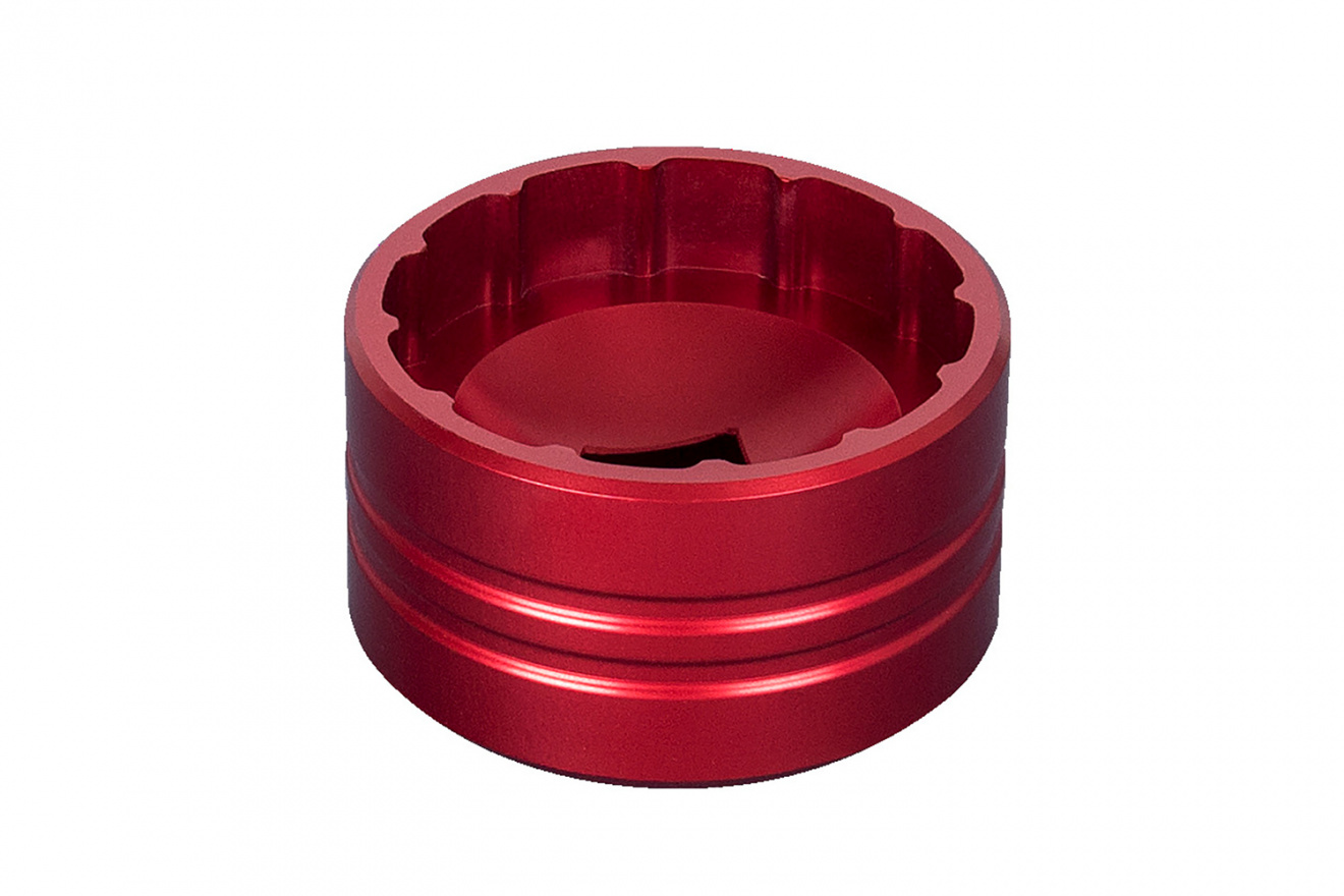 Алюминиевая конструкция с ЧПУ-обработкой и красным анодированием отвечает за точную посадку и предотвращает риск повреждения деталей.
