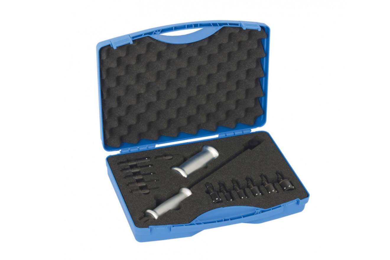 В комплекте 12 насадок для подшипников 6 / 8 / 10 / 12 / 15 / 17 / 19 / 20 / 22 / 24 / 25 / 30 мм. Поставляется в удобном кейсе для хранения и транспортировки.
