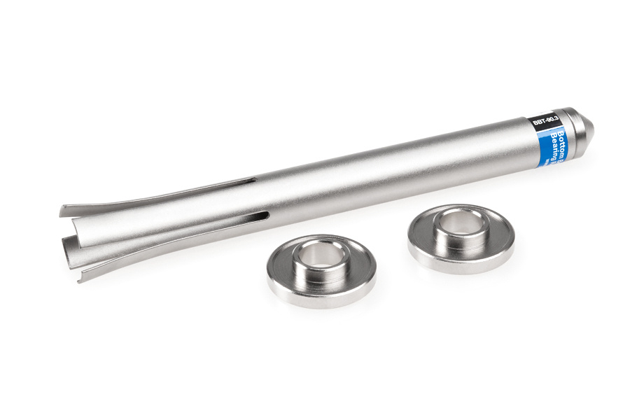 Инструмент сделан из инструментальной стали. В комплект входят две втулки для использования с винтовым прессом для запрессовки подшипников кареток Press Fit.